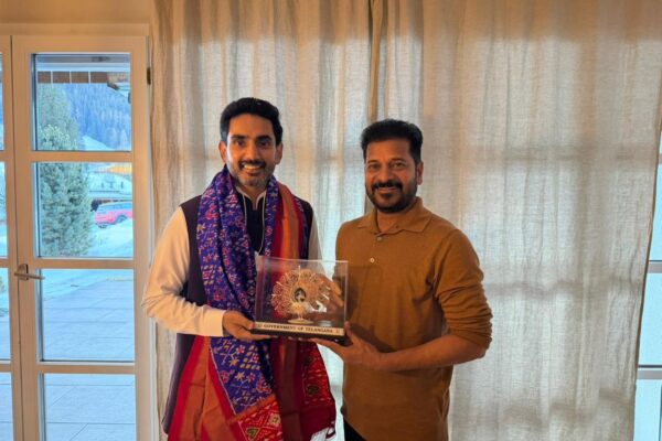 రాష్ట్రాల ప్రగతి ప్రణాళికలపై తెలంగాణ సీఎం, ఏపీ మంత్రి చర్చలు -తెలంగాణ స్కిల్ డెవలప్మెంట్ ప్రోగ్రాం పరిశీలించాలని ఏపీ విద్యామంత్రిని కోరిన తెలంగాణ సీఎం పరస్పర సహకారంతోనే తెలుగు రాష్ట్రాల అభివృద్ధి సాధ్యమని తెలంగాణ సీఎం రేవంత్ రెడ్డి, ఏపీ మంత్రి నారా లోకేష్ అభిప్రాయపడ్డారు. దావోస్ లో తెలంగాణ ముఖ్యమంత్రి రేవంత్ రెడ్డిని ఆంధ్రప్రదేశ్ విద్య, ఐటీ శాఖల మంత్రి నారా లోకేష్ కలిశారు. ఈ సందర్భంగా సీఎంను మంగళగిరి శాలువాతో సత్కరించి, జ్ఞాపిక‌ను అందజేశారు….