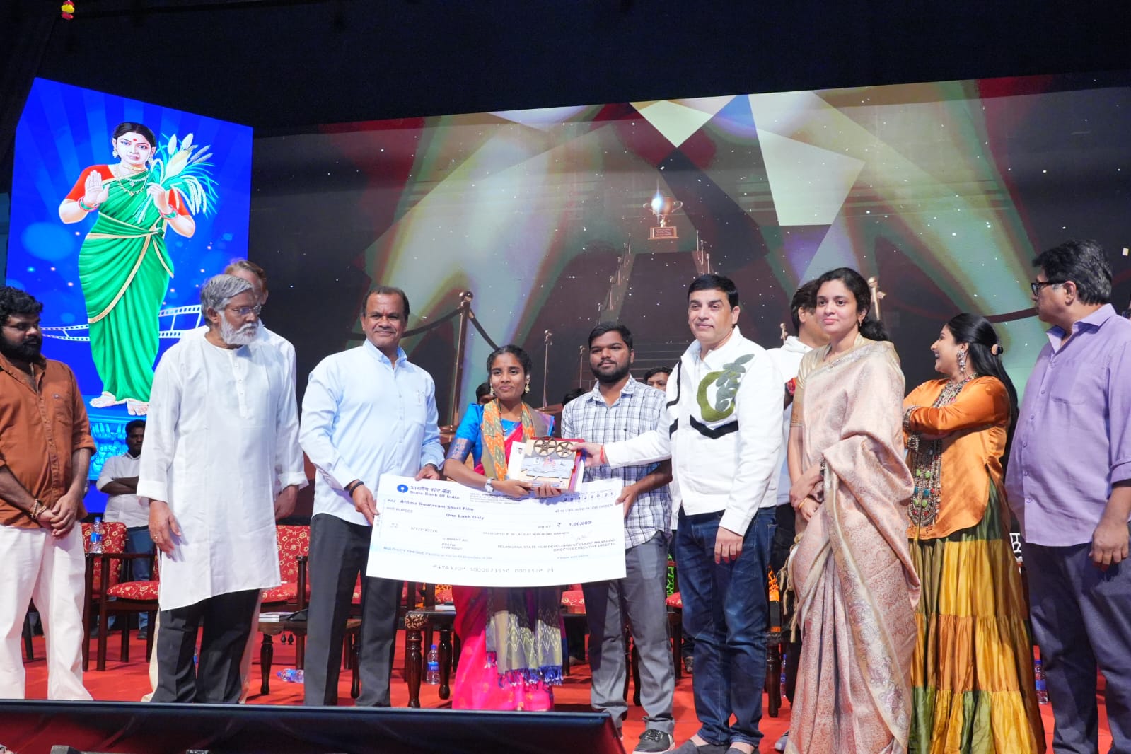 తెలంగాణ ఫిల్మ్ డెవలప్మెంట్ కార్పొరేషన్ ఆధ్వర్యంలో నిర్వహించిన “బతుకమ్మ యంగ్ ఫిల్మ్ మేకర్స్ ఛాలెంజ్” అవార్డుల ప్రదానోత్సవ కార్యక్రమం సోమవారం రవీంద్ర భారతిలో అట్టహాసంగా జరిగింది. ఈ కార్యక్రమానికి రాష్ట్ర రోడ్లు భవనాలు, సినిమాటోగ్రఫీ శాఖ మంత్రి కోమటి రెడ్డి వెంకట్ రెడ్డి… రాష్ట్ర టూరిజం, కల్చరర్,ఎక్సైజ్ శాఖ మంత్రి జూపల్లి కృష్ణారావు తో కలిసి ముఖ్య అతిథిగా హాజరై విజేతలను ప్రకటించి,అవార్డులు ప్రధానం చేశారు. మొదటి బహుమతి 3లక్షలు,రెండో బహుమతి 2లక్షలు,మూడో బహుమతి 1లక్ష.. షార్ట్ ఫిల్మ్,బతుకమ్మ వీడియో విభాగాలకు వేరు వేరుగా నగదు బహుమతులు అందజేశారు.