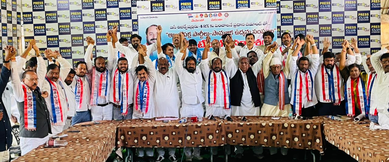 హైద్రాబాద్ సోమాజిగూడ లోని ప్రెస్ క్లబ్ లో ఏర్పాటు చేసిన “అఖిల పక్ష పార్టీలు – సామాజిక ఉద్యమ సంఘాల” రౌండ్ టేబుల్ సమావేశంలో మాజీ మంత్రి వి శ్రీనివాస్ గౌడ్ పాల్గొని కాంగ్రెస్ పార్టీ మ్యానిఫెస్టోలో ఇచ్చిన హామీ ప్రకారం విద్యా, ఉద్యోగాలు, చట్ట సభలలో మరియు కాంట్రాక్ట్ లలో 42% చట్టబద్ధమైన రిజర్వేషన్లు కల్పించాలని డిమాండ్ చేశారు.